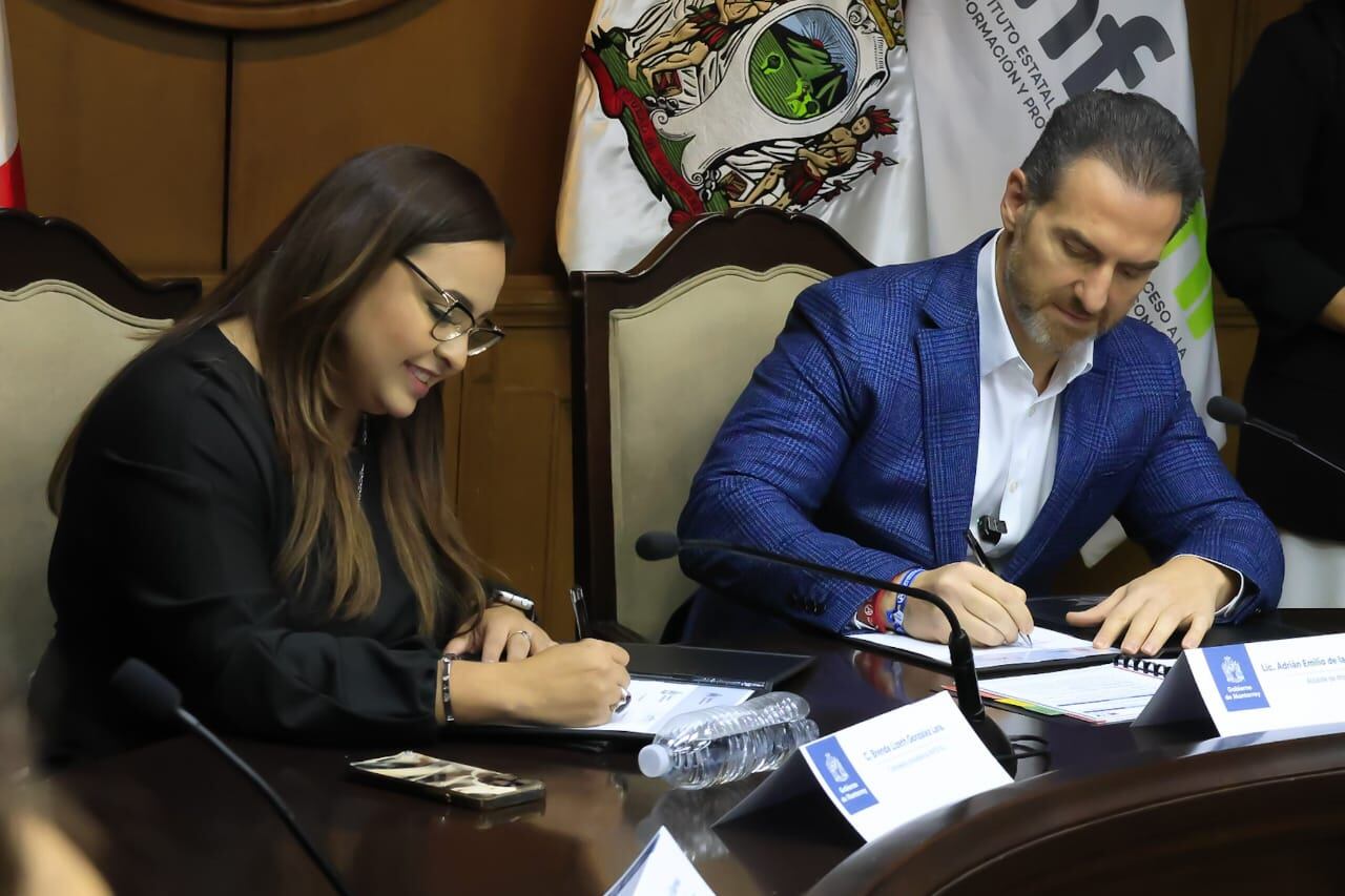 Para transparentar toda acción del Gobierno de Monterrey, el alcalde Adrián de la Garza firmó un convenio con el Instituto Estatal de Transparencia, Acceso a la Información y Protección de Datos Personales de Nuevo León (INFO NL).