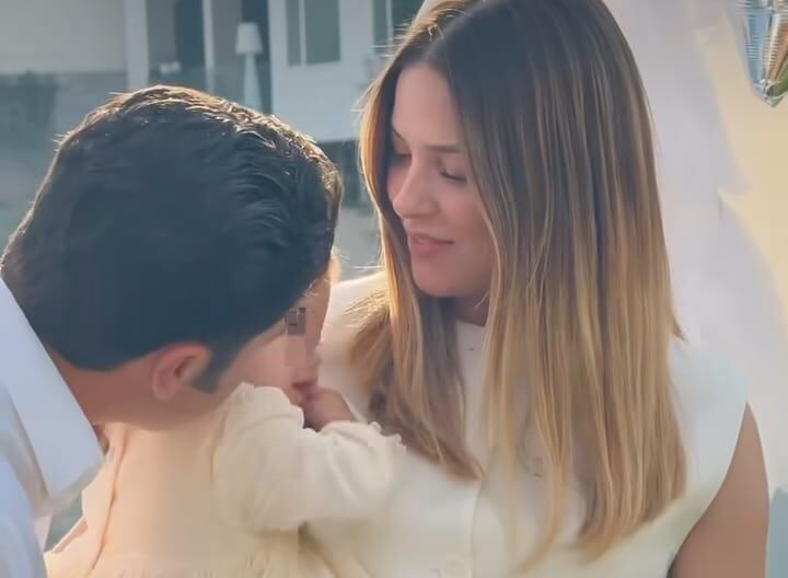 Unas imágenes en las que aparece junto a su esposo y su primogénita, sosteniendo una ecografía, revelaba que la cigüeña nuevamente visitará su casa.