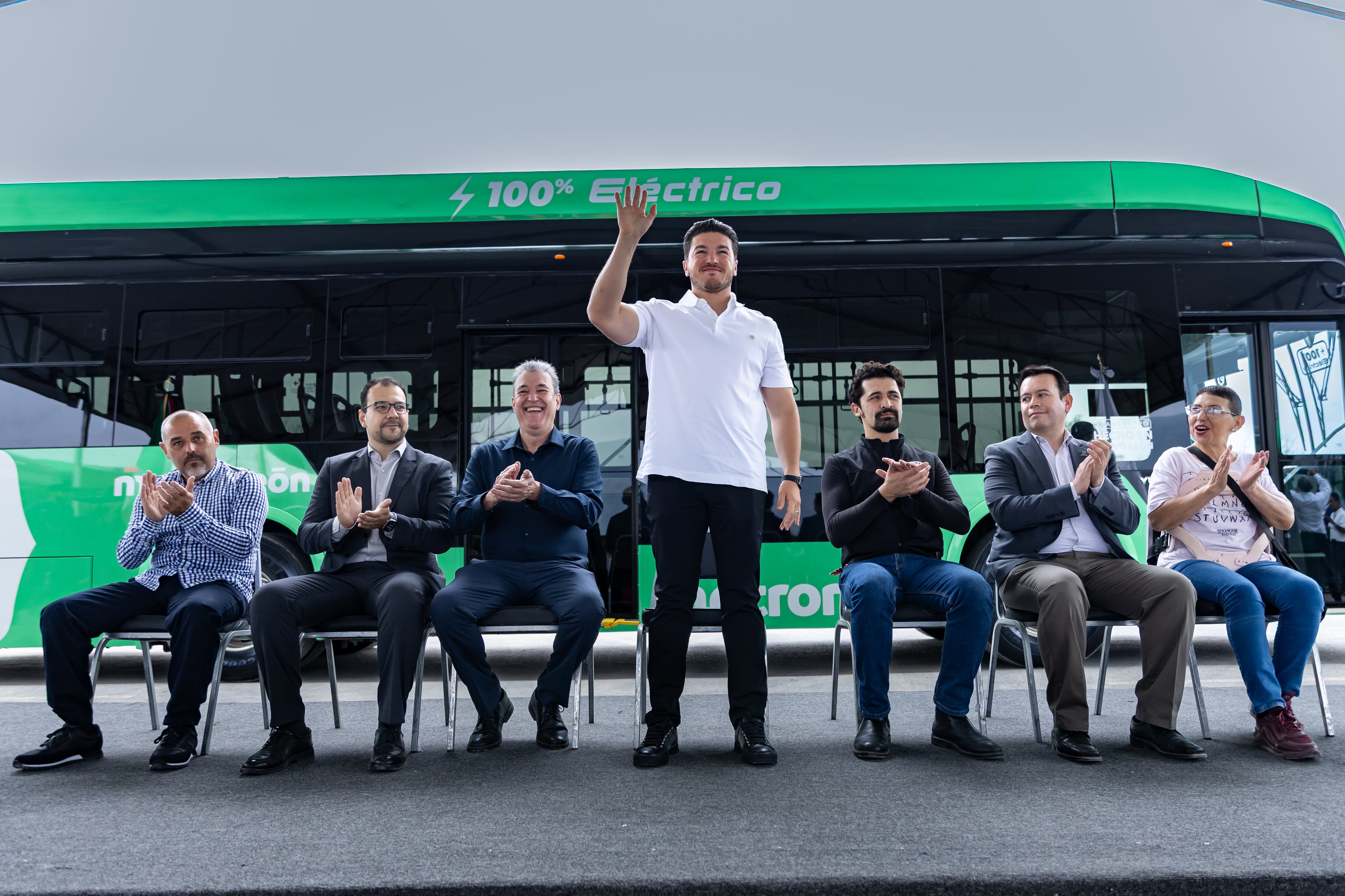 “Nuevos camiones 100% hechos en Nuevo León, 100% nuevos, 100% eléctricos, todos con internet, todos con clima, todos con las características de accesibilidad”, añadió.