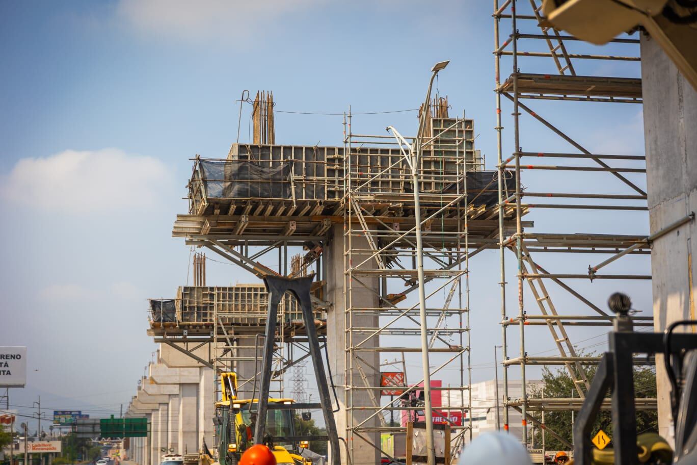 Mientras que las acciones en la ampliación de la Línea 6 que irá desde Apodaca hasta el Aeropuerto de Monterrey se tienen actividades de perforación, habilitado de acero, izaje y concreto en pilas, excavación de dados y el habilitado de acero, cimbra y concreto en columnas y capiteles, además de la fabricación y adecuación de vigas.