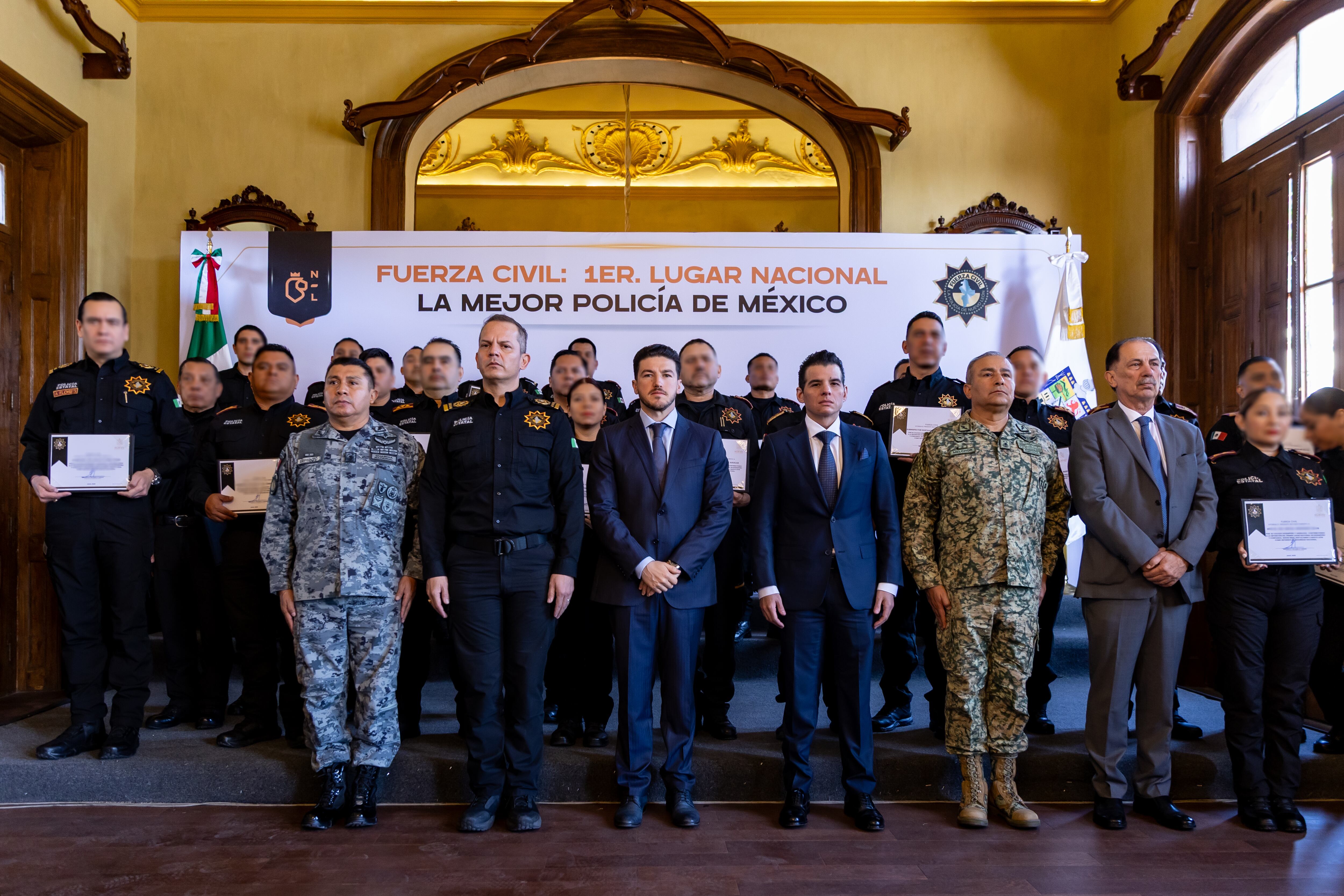 García encabezó la entrega de reconocimientos a Mandos Operativos tras la designación del Instituto Nacional de Estadística y Geografía (Inegi) a Fuerza Civil como la mejor policía de México.