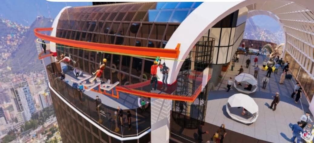 La Torre Rise, en construcción en la zona Obispado, será la más alta de Latinoamérica con 475 metros de altura, pero también tendrá una atracción extrema: la tirolesa en rascacielos, la de mayor altura del mundo.