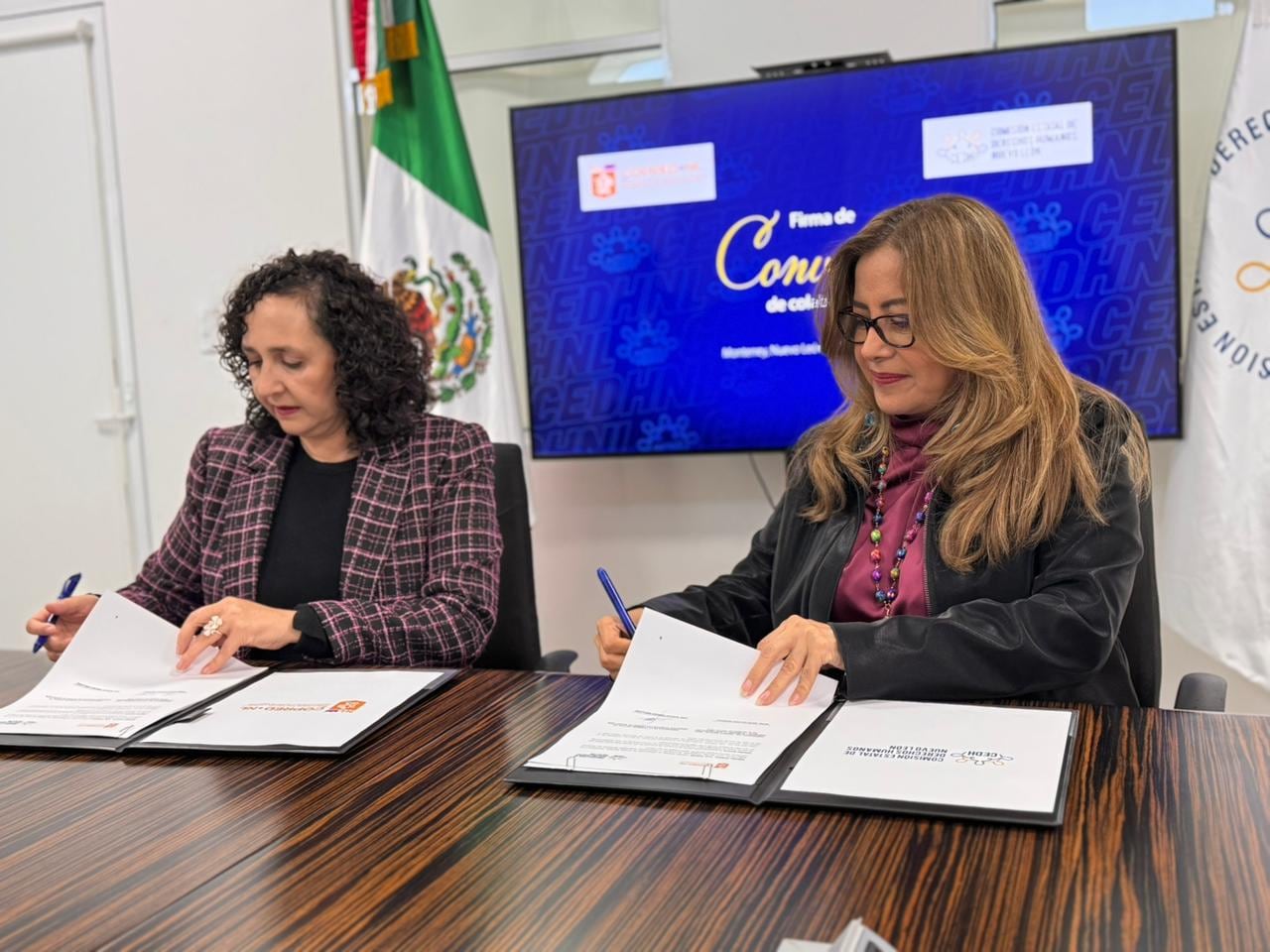 La Comisión Estatal de Derechos Humanos del Estado de Nuevo León (Cedhnl) celebró un Convenio General de Colaboración con el Consejo para Prevenir y Eliminar la Discriminación en Nuevo León, con el propósito de sumar esfuerzos institucionales para avanzar, de manera conjunta, hacia un estado justo, incluyente y libre de toda forma de discriminación.