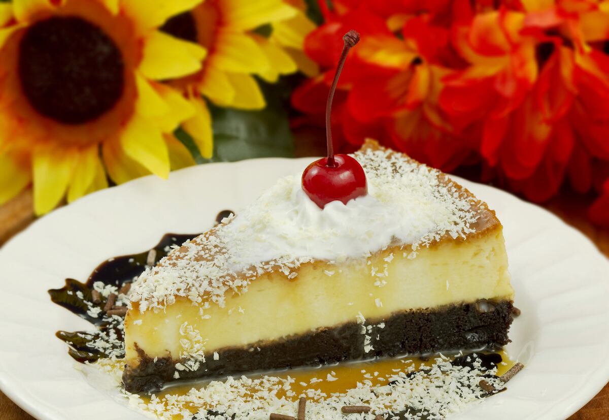 Para su elaboración, lo importante es colocar primero la harina de pastel y luego la mezcla del flan. Lo curioso es que cuando se hornea, el resultado es exactamente a la inversa.
