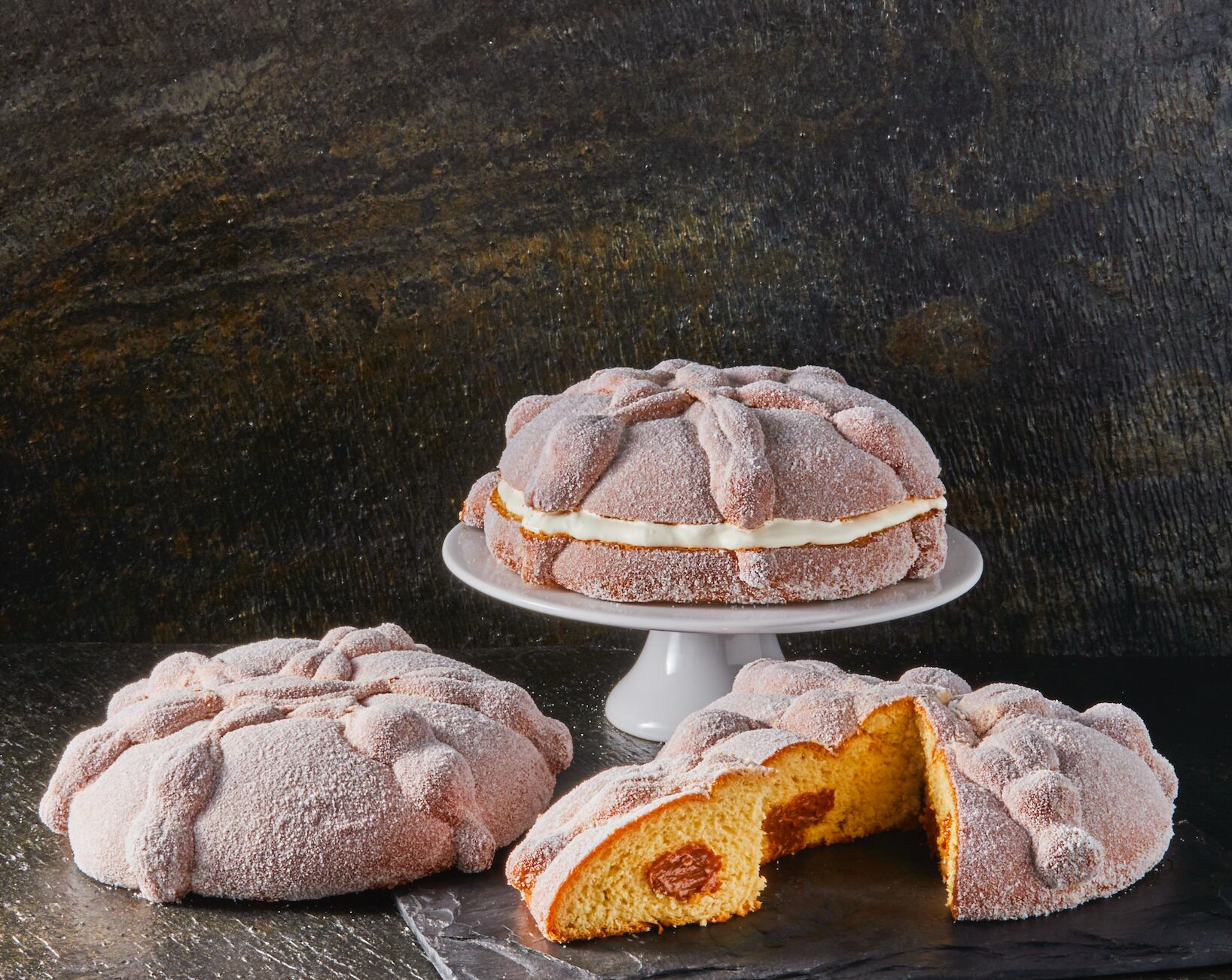 Todas las opciones de pan de muerto se ofrecen en presentación individual o grande, que resulta ideal para compartir.
