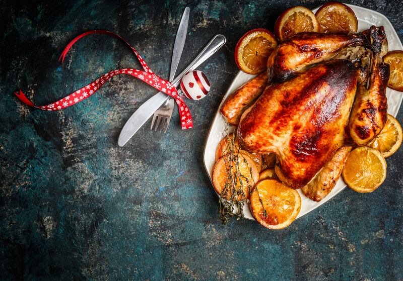 Este plato navideño siempre quedará para chuparse los dedos. Se necesita un pollo entero, el cual hay que limpiar y vaciar para rellenarlo después. Para el relleno, prepara la carne de res molida como picadillo (sin tanta agua para que quede espeso) y agrega algunas pasas. Mientras se cuece el relleno, salpimienta todo el pollo por la parte de afuera, rellénalo con el picadillo y cierra con hilo de cocina.