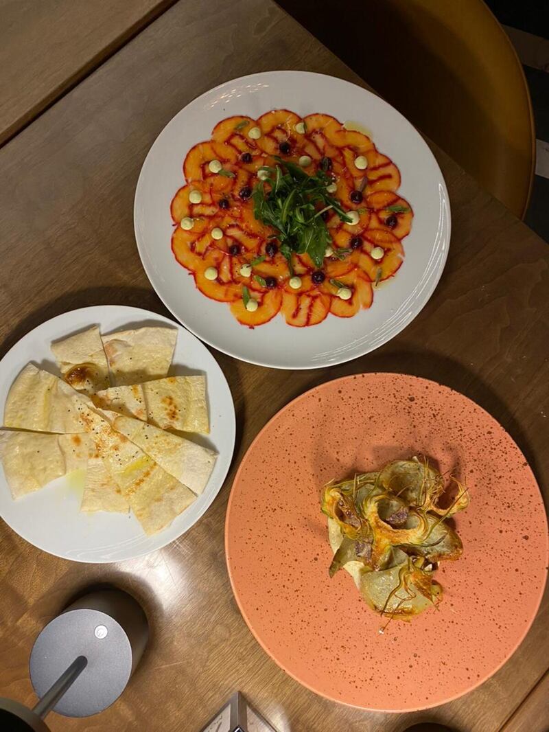 Un plato muy recomendable es la crema di carote, preparada con zanahoria, un toque de miel, cacao en polvo, focaccia de hierbas finas hecha en casa.