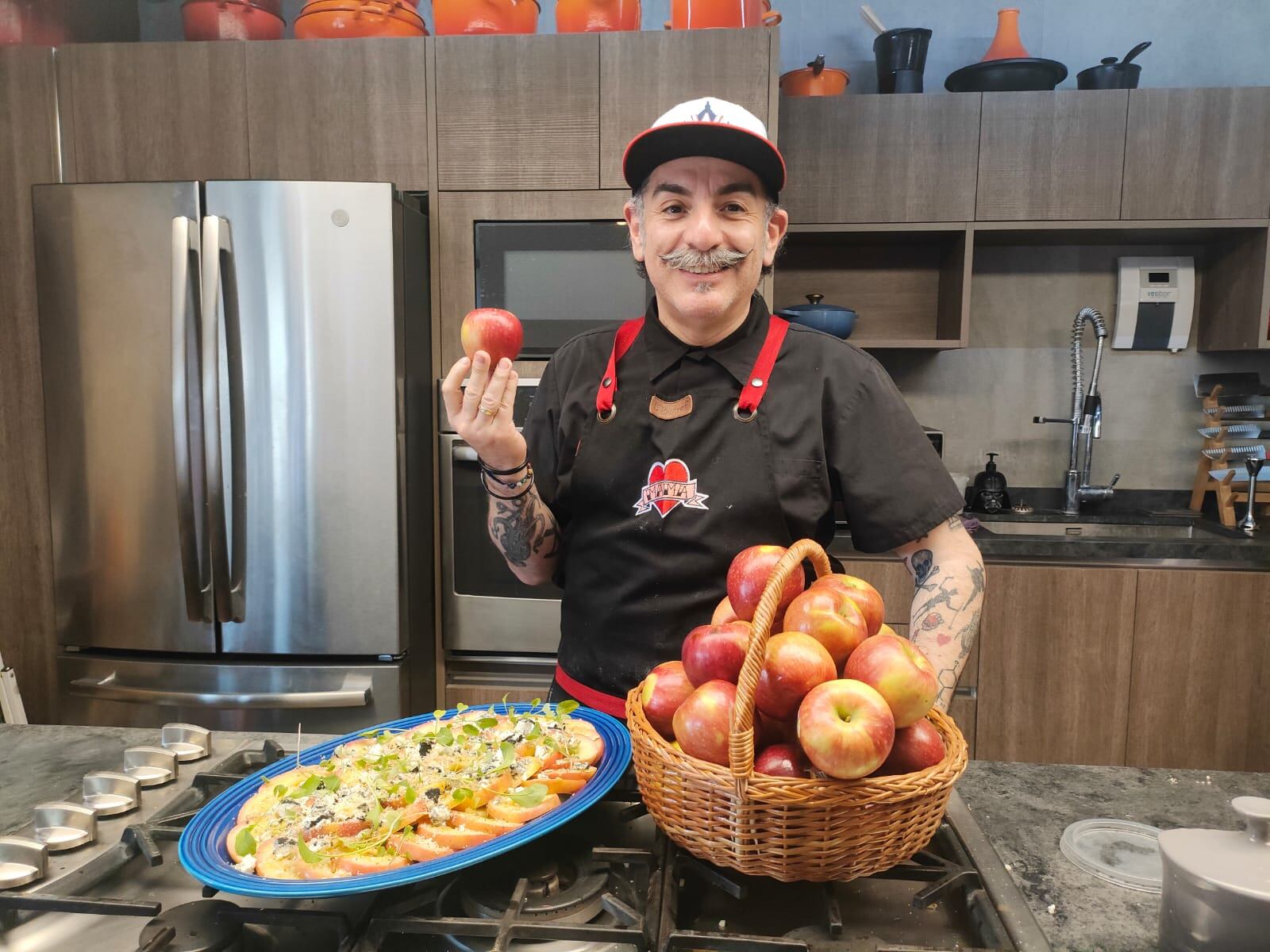 La manzana es parte de nuestra vida, señala, “no estaríamos aquí si no se hubiera bajado la manzana del árbol. Es una fruta muy versátil que por sí sola es un postre, ahora si la cocinas con amor, haces grandes cosas”.
