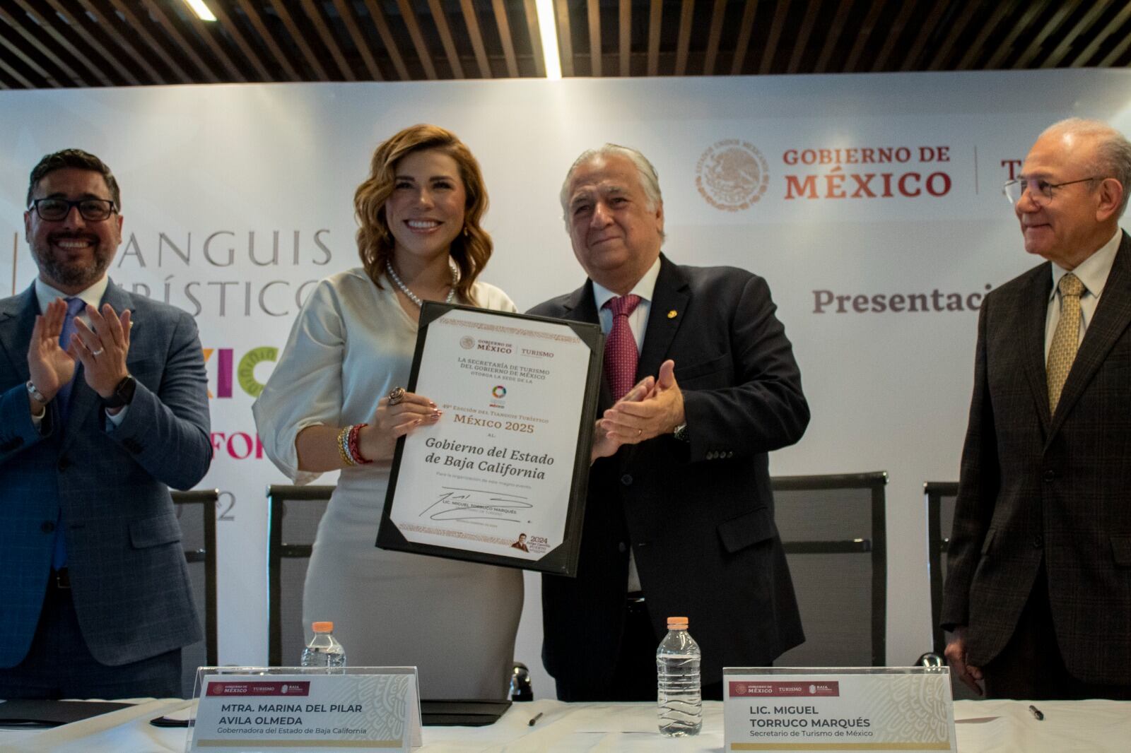 El secretario de Turismo del Gobierno de México, Miguel Torruco Marqués, entregó a la gobernadora de Baja California, Marina del Pilar Avila Olmeda, el nombramiento oficial de la sede del Tianguis Turístico México 2025, que celebrará su edición 49ª en esta entidad, ese año.