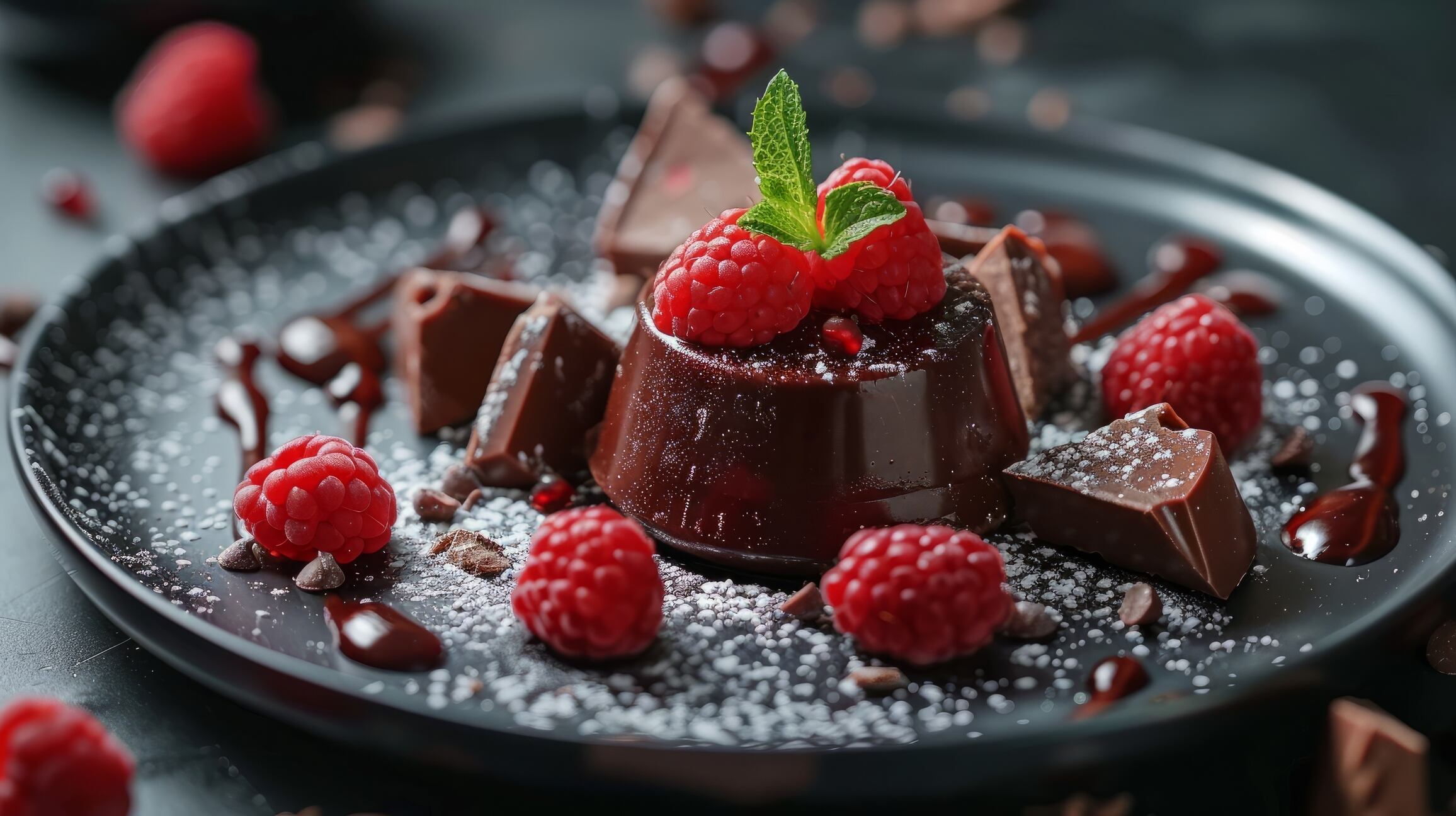 - Para finalizar, se decora con frambuesas y almendras cubiertas con chocolate de Dro´ops.