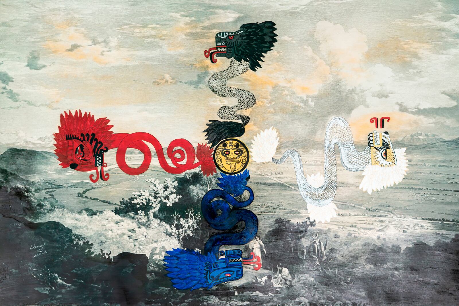 Las Migraciones II es una exploración visual de la cultura Mexica/Azteca, inspirada en el Códice Borbónico y la Tira de la Peregrinación.