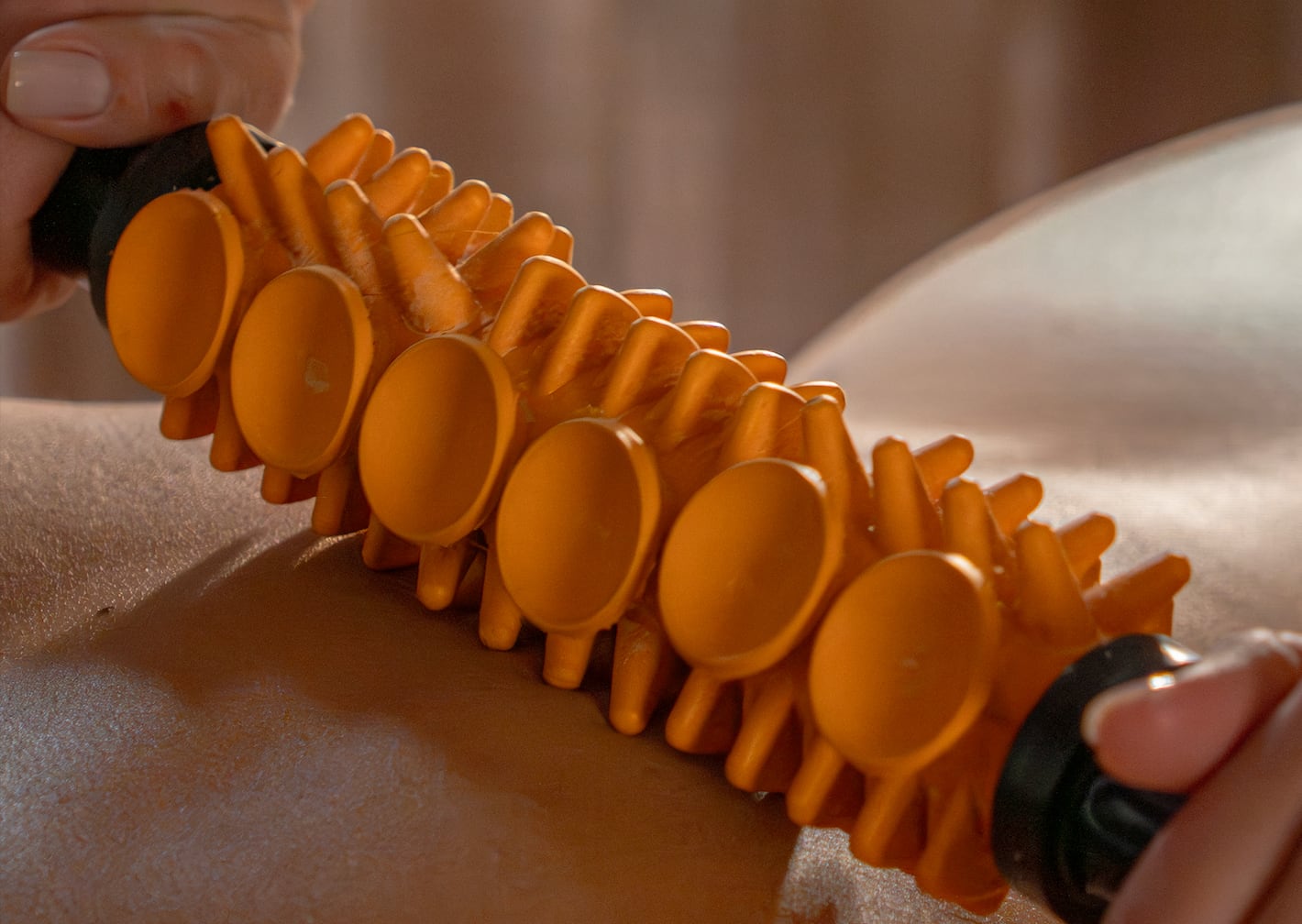 En Savia, el uso de rodillos de madera responde a una lógica precisa, ya que son piezas diseñadas de forma ergonómica, con relieves que se adaptan a las curvas del cuerpo y permiten trabajar en capas profundas del tejido sin dañar la piel.