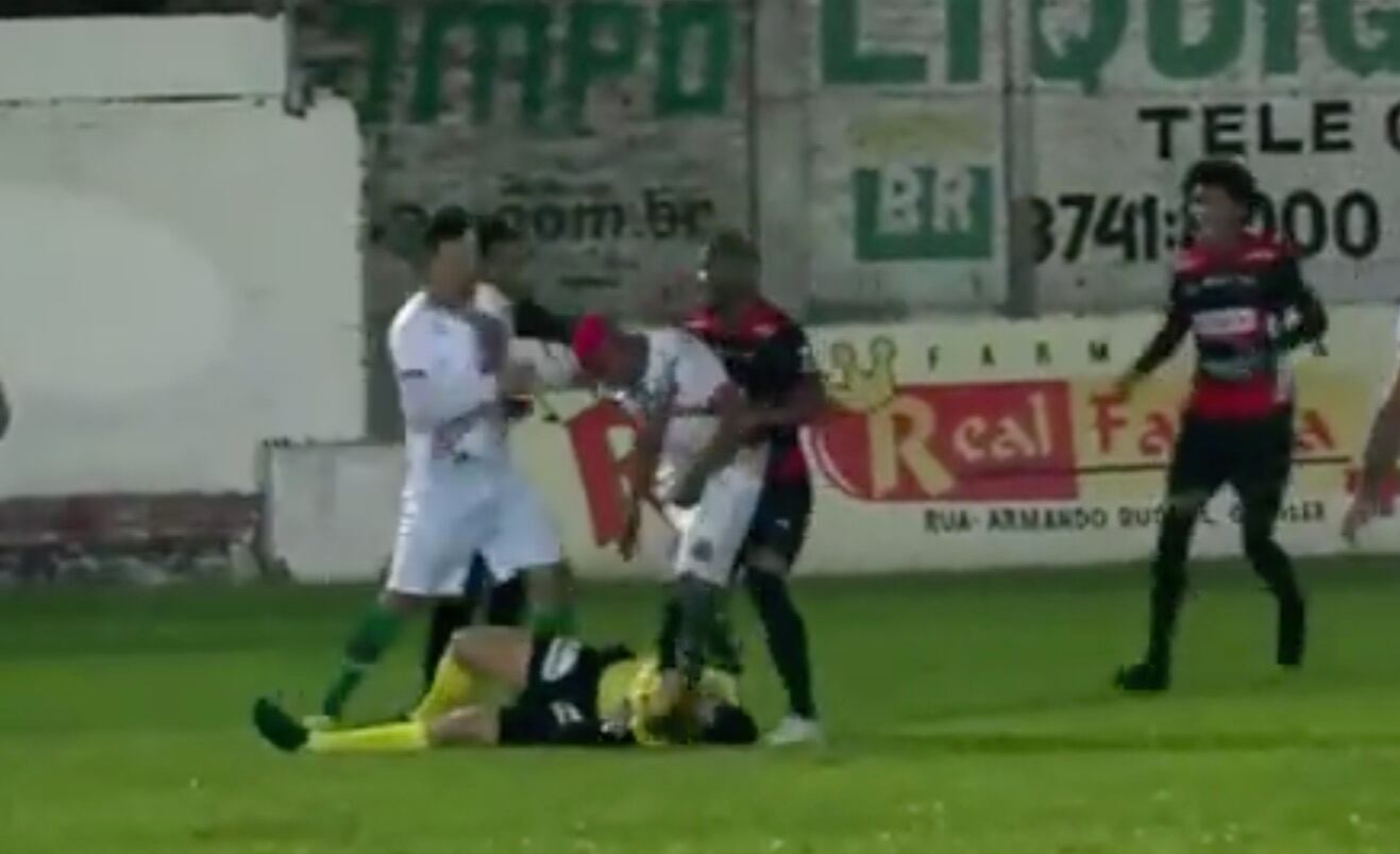 Tanto compañeros como jugadores del Garaní intervinieron para evitar que Ribeiro siguiera agrediendo a Crivellaro.