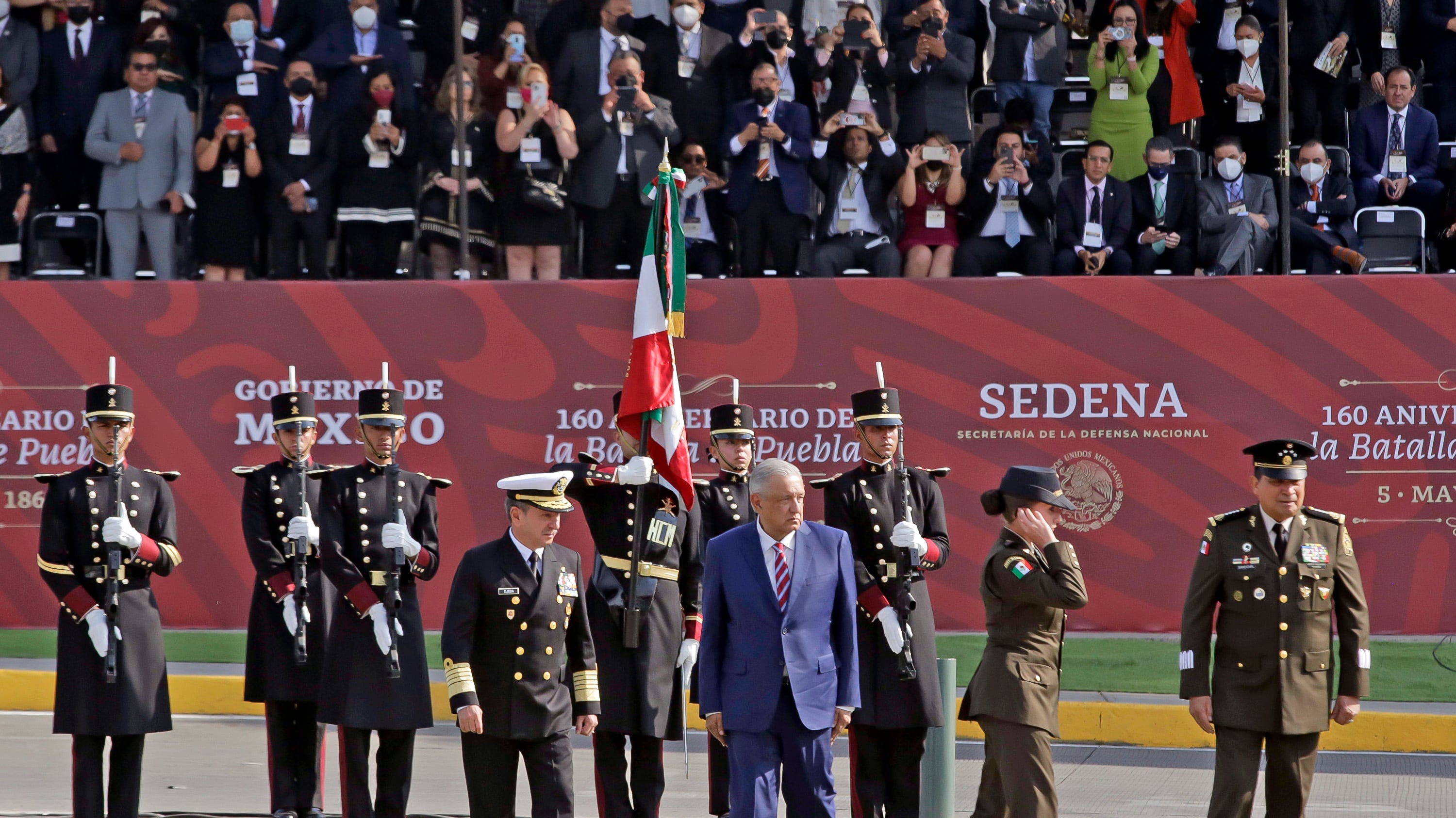 Por primera vez y tras dos años de haberse suspendido, el presidente Andrés Manuel López Obrador y el gobernador de Puebla, Miguel Barbosa Huerta presenciaron el desfile del 5 de Mayo en Puebla juntos, completamente de pie y entusiasmados durante la marcha de 11 mil 500 estudiantes de todo el estado y miembros de las fuerzas armadas.