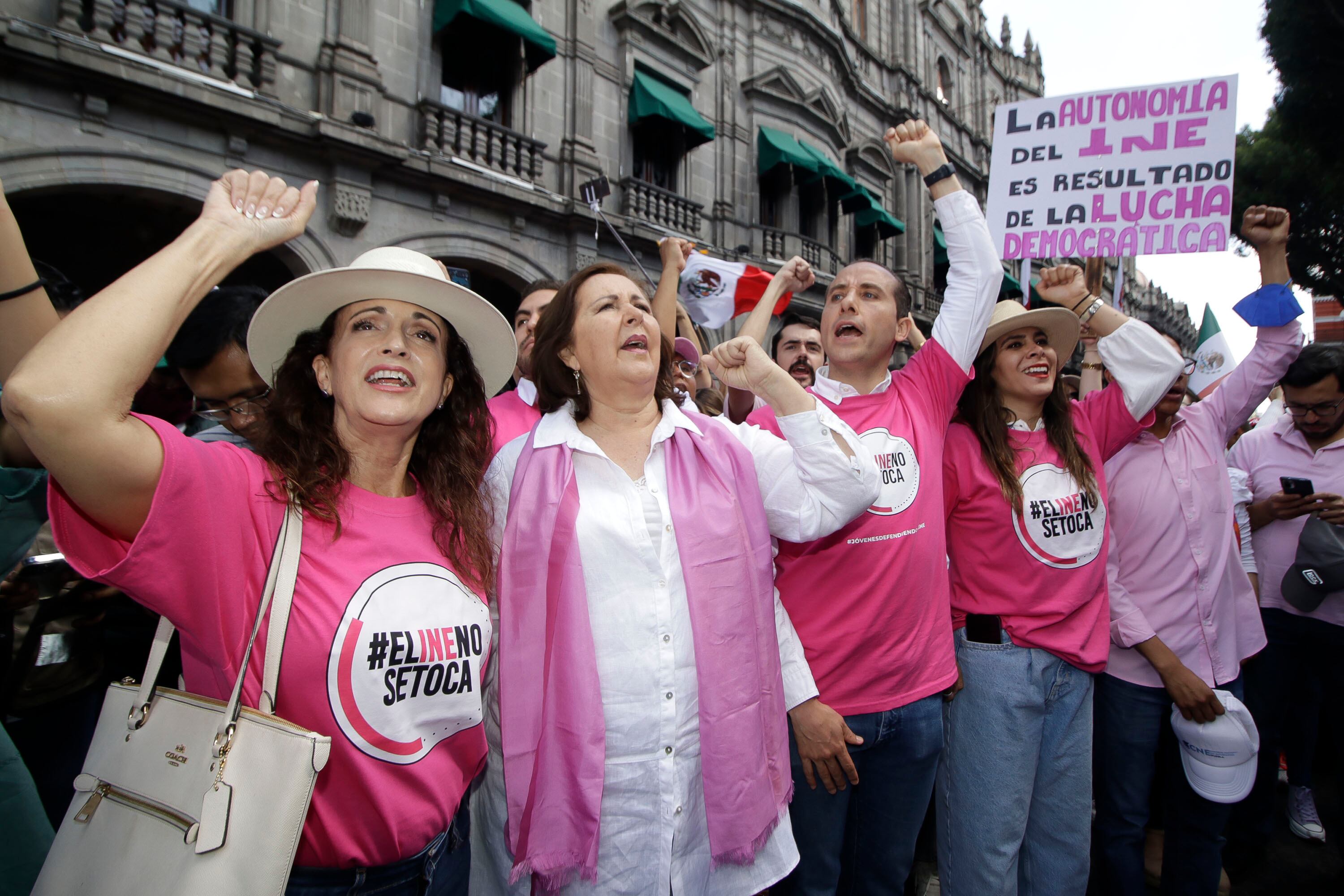 Diputados federales del PAN, organizaciones como Sí por México y Chalecos MX en Puebla y cientos de personas se sumaron a las movilizaciones nacionales en defensa del Instituto Nacional Electoral (INE) y en contra de la reforma lopezobradorista.