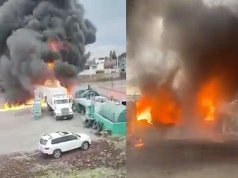 En redes sociales se difundieron imágenes de la columna de humo negro que salía del predio, así como de las llamas que consumían el remolque, a unos metros también se observaban algunos camiones de pasajeros.