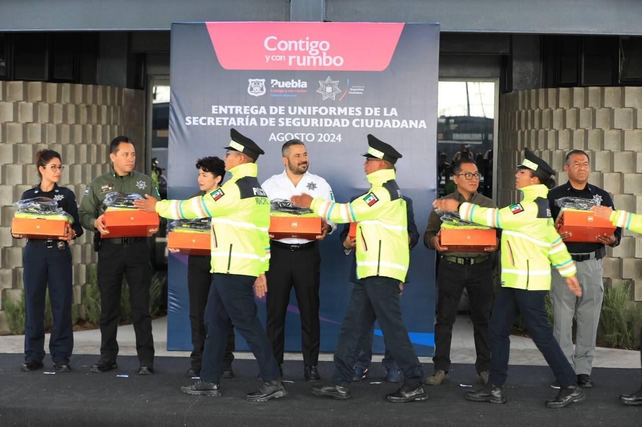 El alcalde la Puebla, Adán Domínguez Sánchez entregó dos mil 784 nuevos uniformes para policías y elementos de Protección Civil de la Secretaría de Seguridad Ciudadana (SSC), lo que representó una inversión de 30.9 millones de pesos.
