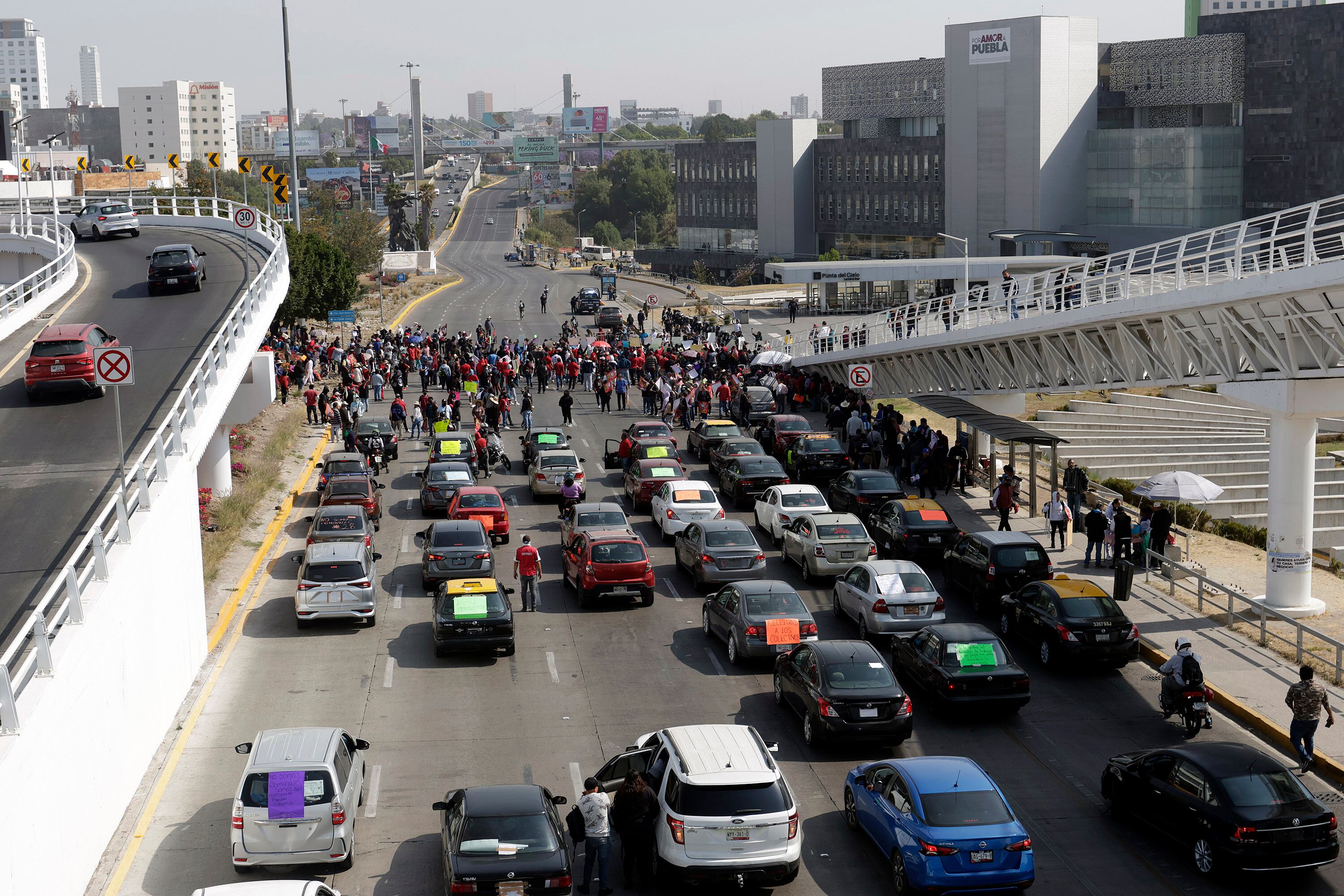 Cabe mencionar que el bloqueo de la Vía Atlixcáyotl a la altura del CIS generó complicaciones viales, por lo que elementos de tránsito implementaron desvíos hacia Plaza Solesta a través del distribuidor vial para mitigar el impacto en la circulación.