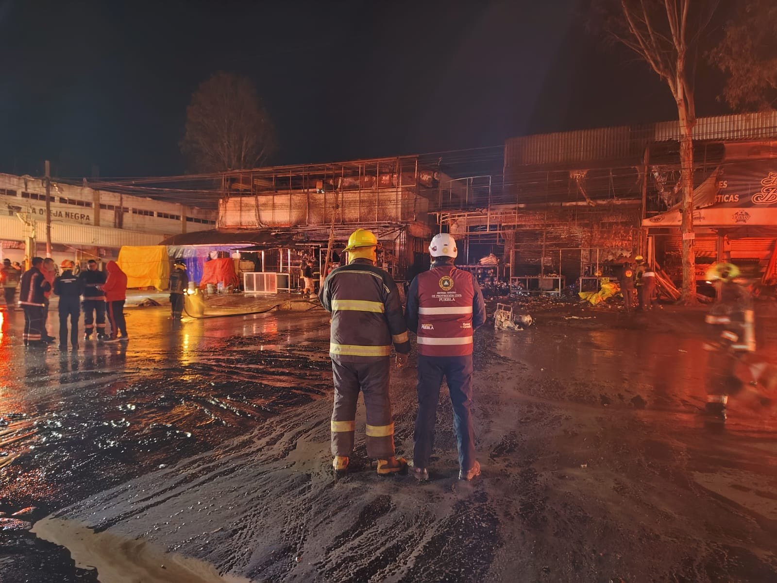 En las labores participaron elementos de Protección Civil estatal y municipal, así como Bomberos del estado, quienes trabajaron en distintos frentes para evitar la propagación del incendio a otras áreas del mercado.