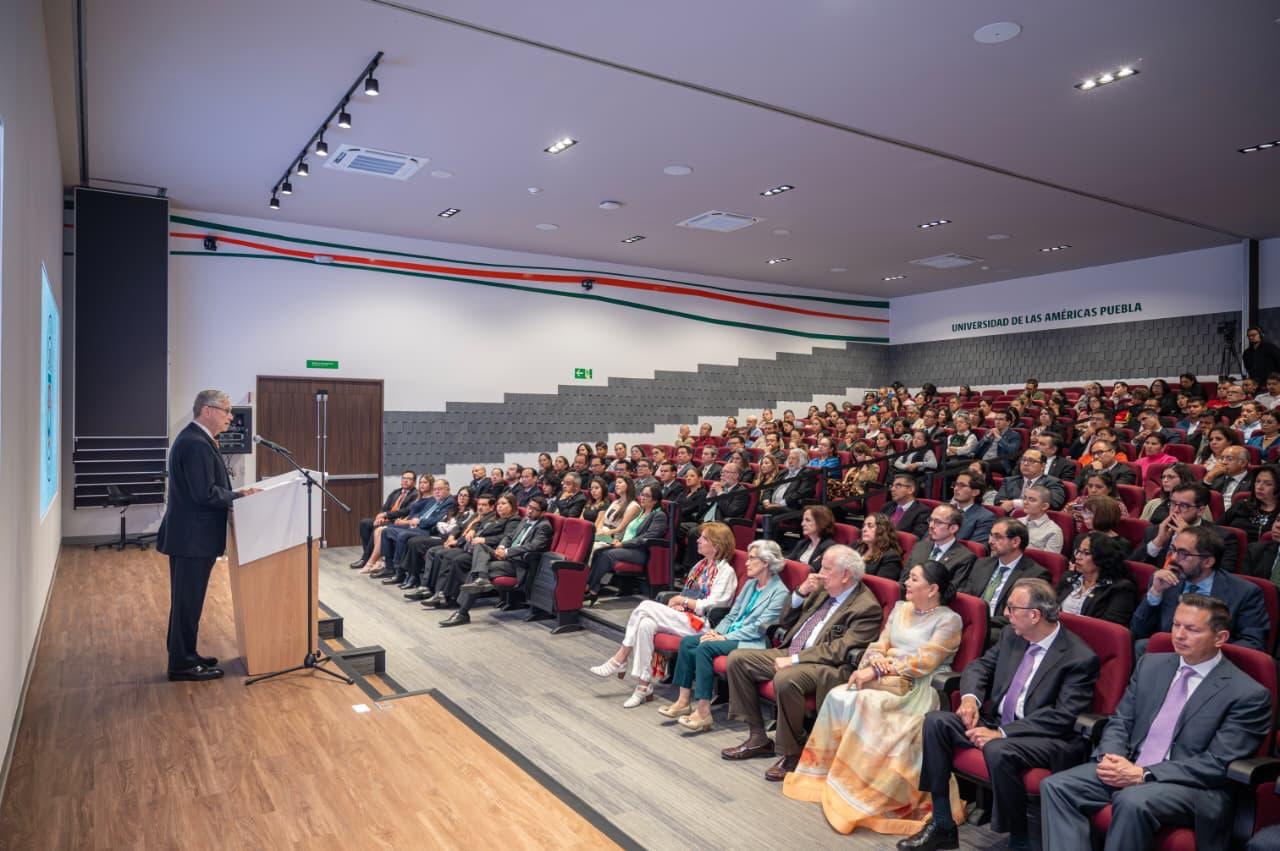 Ante los miembros del Consejo Académico, el Consejo Administrativo, el Consejo Empresarial, así como la comunidad universitaria, reunidos en el Aula Magna 1 y 2 del recién renovado tercer piso de la Biblioteca, el Dr. Derbez afirmó que “los resultados obtenidos durante el periodo 2025-2026 nos permiten ser optimistas respecto a nuestro futuro” y destacó que la Universidad de las Américas Puebla es “la única universidad que integra en su identidad los legados culturales de Mesoamérica y Europa” convirtiéndose en un puente educativo entre las naciones de América.