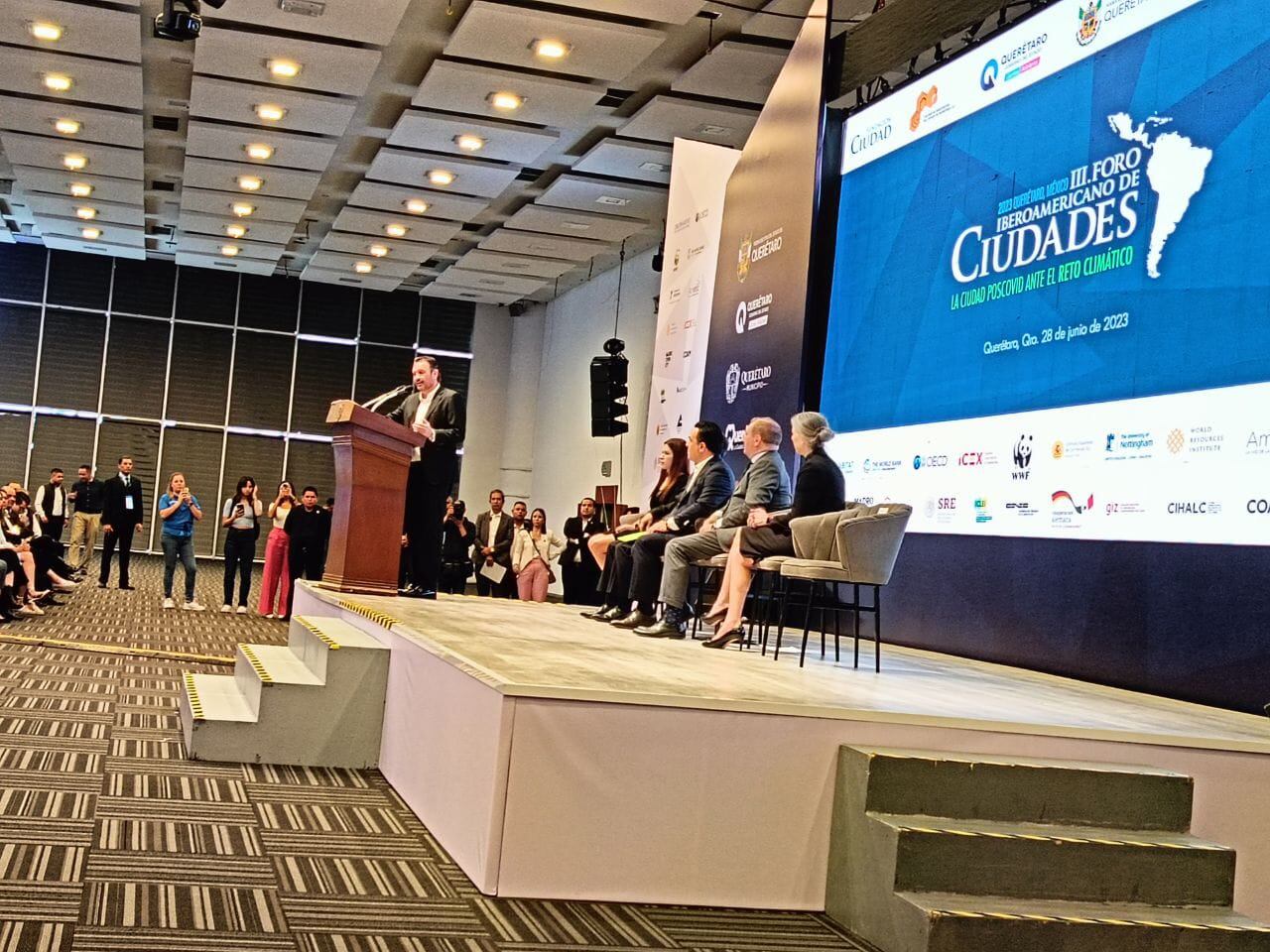 Autoridades estatales y municipales inauguraron el tercer Foro Iberoamericano de Ciudades 2023 “La ciudad poscovid ante el reto climático”, que se llevará a cabo del 28 al 30 de junio en el Querétaro Centro de Congresos.