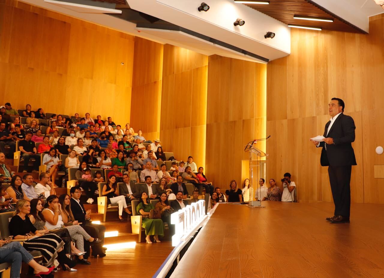 La aplicación digital fue diseñada por los participantes del gabinete juvenil 2023. Fue presentado por el alcalde Luis Bernardo Nava y la Secretaría de Desarrollo sostenible Tania Palacios Kuri, frente emprendedores líderes de cámaras, colegios y asociaciones.