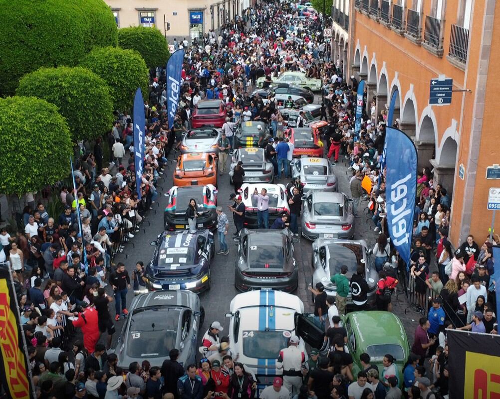 Desde temprano, el entusiasmo de los seguidores se hizo palpable. Desde las 15:30 horas, fanáticos de todas las edades comenzaron a congregarse en las inmediaciones del Jardín Zenea, ansiosos por asegurar el mejor lugar para ver de cerca el desfile de vehículos históricos. La llegada de los pilotos estaba programada para las 16:30, y no pasó mucho tiempo antes de que las calles de la ciudad se transformaran en un bullicioso escenario automovilístico. Los arcos de Querétaro, emblemáticos de la ciudad, también fueron testigos de la pasión de la gente que se ubicó a lo largo de la calzada para capturar con sus cámaras el paso de los participantes.