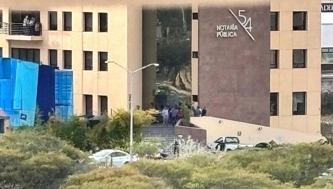 La Notaría, ubicada a espaldas del Centro Cívico, fue acordonada por elementos de seguridad, quienes llegaron a la zona donde se reporta que una persona perdió la vida.