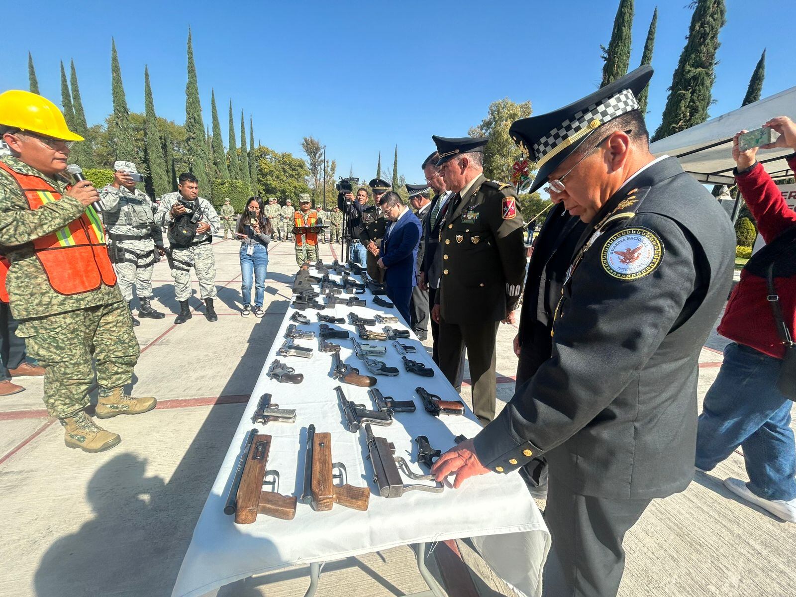 El comandante de la 17ma. Zona Militar, Vinicio Perea Alcaraz, encabezó la ceremonia de destrucción de armamento donde fueron neutralizadas 125 armas cortas y 93 largas, entre las que se encontraban fusiles, subametralladoras, armas de manufactura artesanal y revólveres.