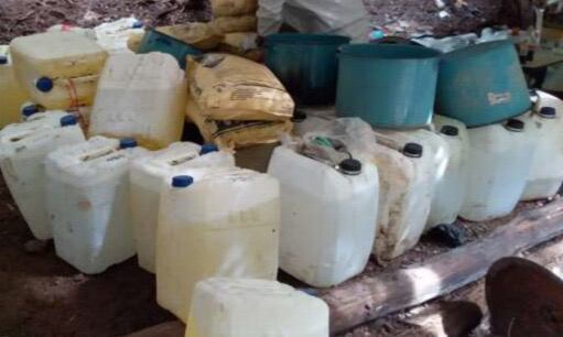 En el operativo fueron asegurados 3 mil 580 litros y 420 kilogramos de sustancias utilizadas para la elaboración de drogas, así como 3 reactores y 5 destiladores. Sin embargo, no hubo detenidos.