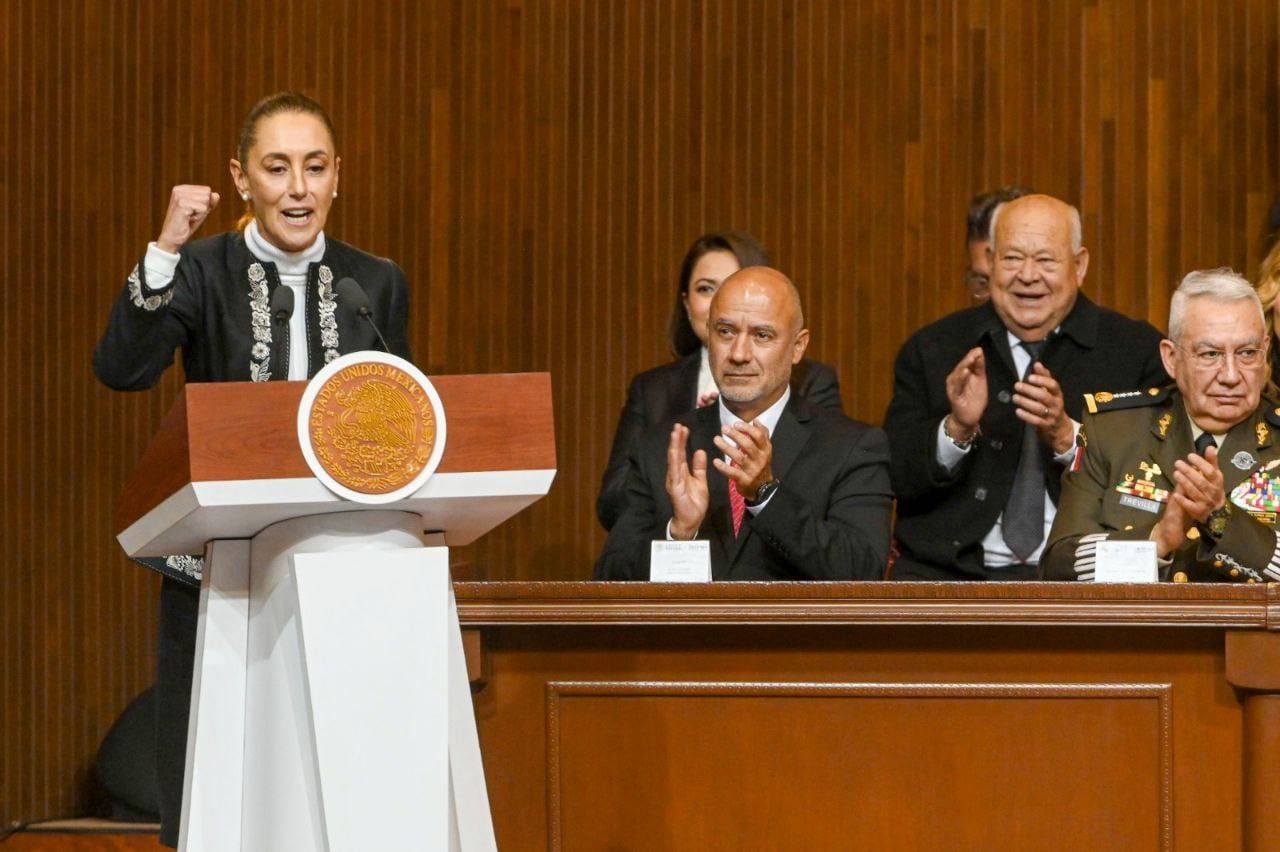 Hizo referencia al periodo de 1982 a 2018, en el que se realizaron privatizaciones, se debilitaron derechos sociales y se aprobaron reformas que consideró contrarias al interés público. Presentó la Cuarta Transformación como la recuperación del sentido social y soberano de la Constitución. Enumeró reformas aprobadas entre septiembre de 2024 y diciembre de 2025: 22 reformas constitucionales y 50 a leyes secundarias. Entre ellas, mencionó la elección popular de ministras, ministros, magistradas, magistrados y jueces; la incorporación de la Guardia Nacional a la Secretaría de la Defensa Nacional; el reconocimiento de pueblos indígenas y afromexicanos como sujetos de derecho público; la reversión de la reforma energética de 2013 y el fortalecimiento de Pemex y CFE; el reconocimiento constitucional de programas de bienestar, el derecho a vivienda digna, la protección animal, la defensa de maíces nativos y la prohibición de maíz transgénico; la jornada laboral de 40 horas; el derecho humano al agua; y la reforma al artículo 40 que rechaza intervenciones extranjeras lesivas a la soberanía. Leyó el texto reformado del artículo 40 y concluyó con la frase: “México no se doblega. No se arrodilla. No se rinde y no se vende. Que viva la Constitución de 1917. Que viva el pueblo de México. Que viva México”.