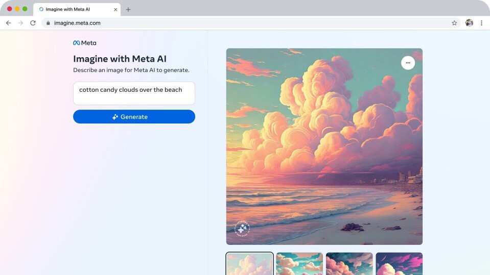 Meta ha lanzado Imagine, una nueva herramienta gratuita para web independiente de sus ‘apps’ que permite a los usuarios generar imágenes impulsadas por Inteligencia Artificial a partir de descripciones con lenguaje natural; una novedad que viene con la llegada de su asistente Meta AI a WhatsApp, Messenger e Instagram.