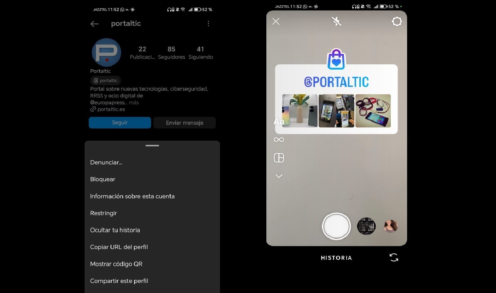 Instagram trabaja en una nueva funcionalidad para Android que permitirá a los usuarios compartir una vista previa de un perfil, mostrando además de su nombre y tres publicaciones de su ‘feed’, más información sobre la cuenta y el enlace de acceso a este en el apartado de Historias.