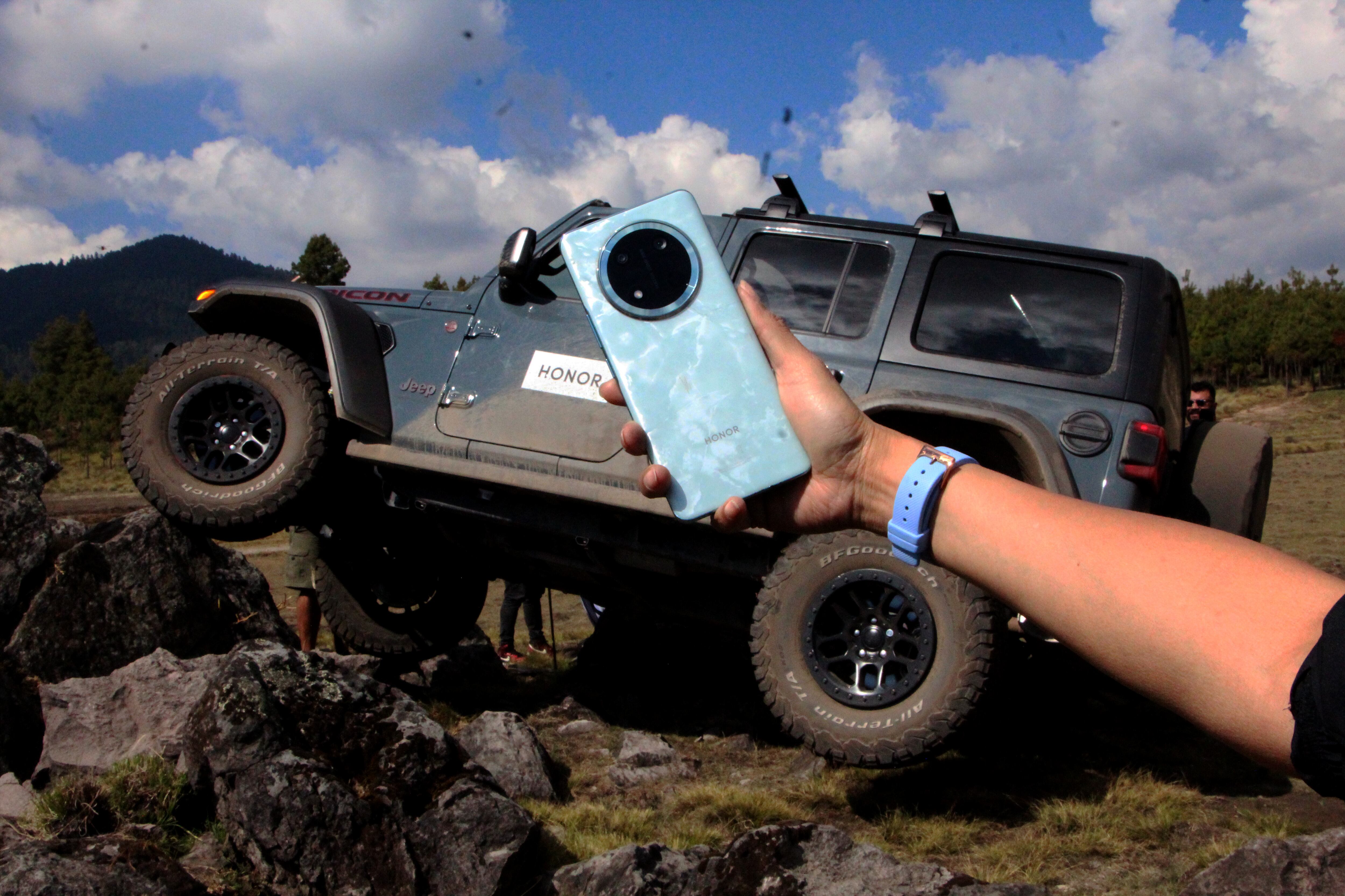 Cuando los Jeep completaron su recorrido, nos acercamos de inmediato para revisar los teléfonos y para sorpresa de todos, el HONOR Magic7 Lite no solo resistió, sino que salió completamente ileso: sin pantallas rotas, sin marcos doblados y sin daños en su funcionamiento.