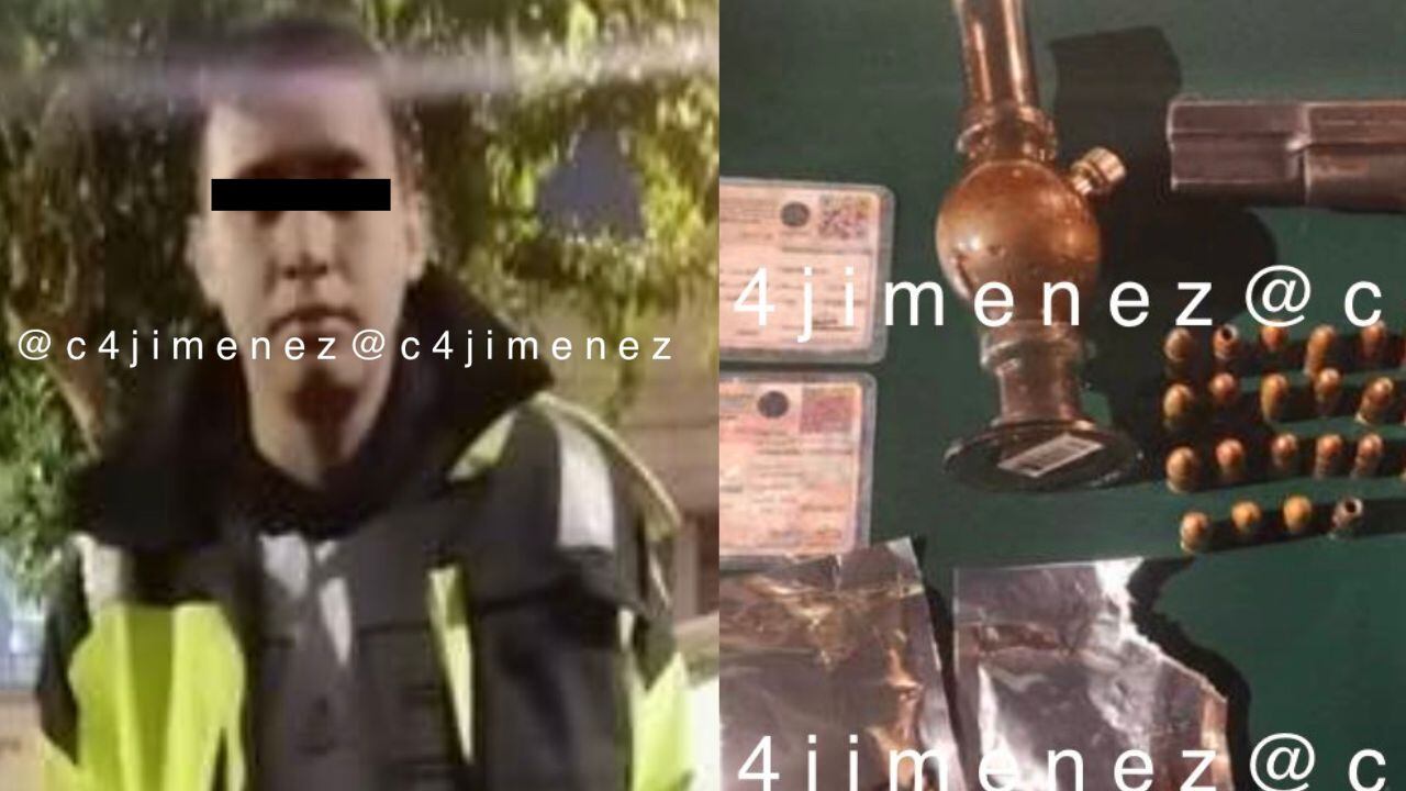 En las imágenes se puede ver el rostro del acusado; asimismo, el reportero evidenció algunos de los artículos que portaba a la hora de su detención: un arma con diversos cartuchos, una pipa y dos bolsas con la leyenda ‘Ogrange’. Pese a que el reportero no explicó la sustancia ilícita que usó el uniformado, algunos internautas sospechan que se trata de “Orange Bud”.
