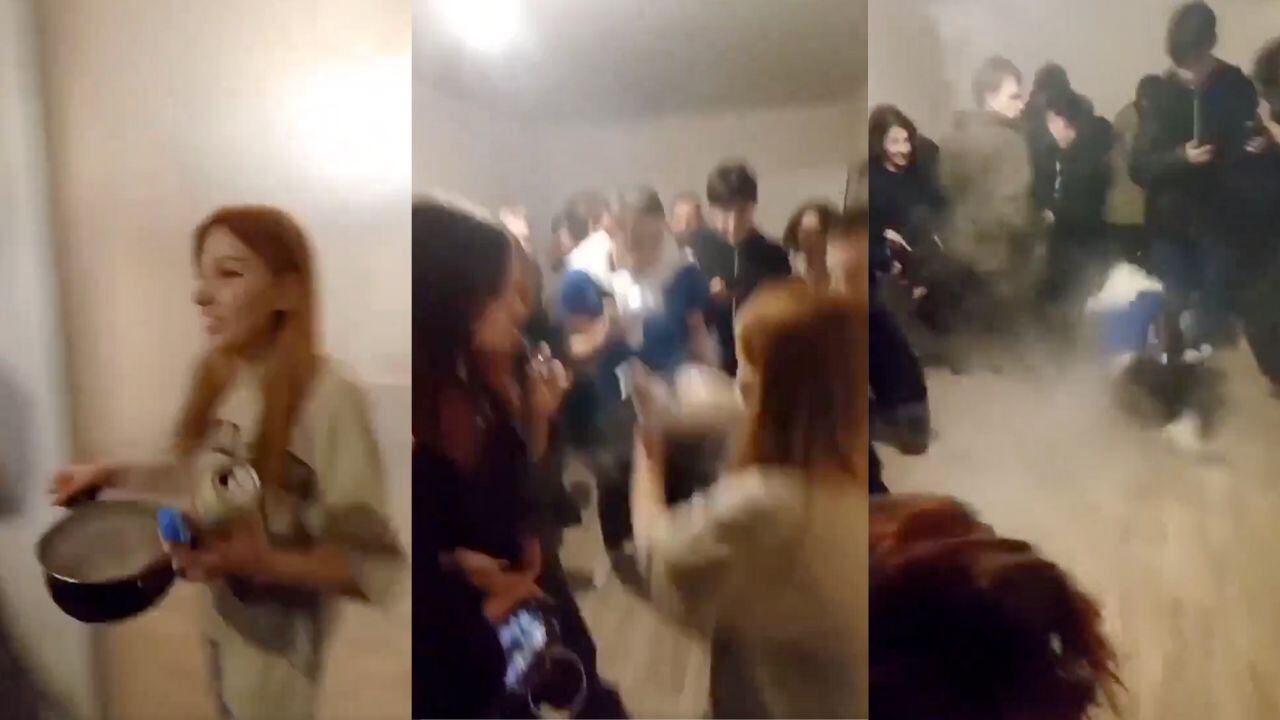 En un video, con solo 22 segundos de duración, se puede ver cómo la acusada caminó con una olla que tenía agua sumamente caliente. Los presentes esperaban a la mujer, pero jamás imaginaron que los atacaría con el líquido. La víctima intentó huir, mas cayó en el suelo. Los jóvenes comenzaron con los reclamos para entender el razón de la “broma”.