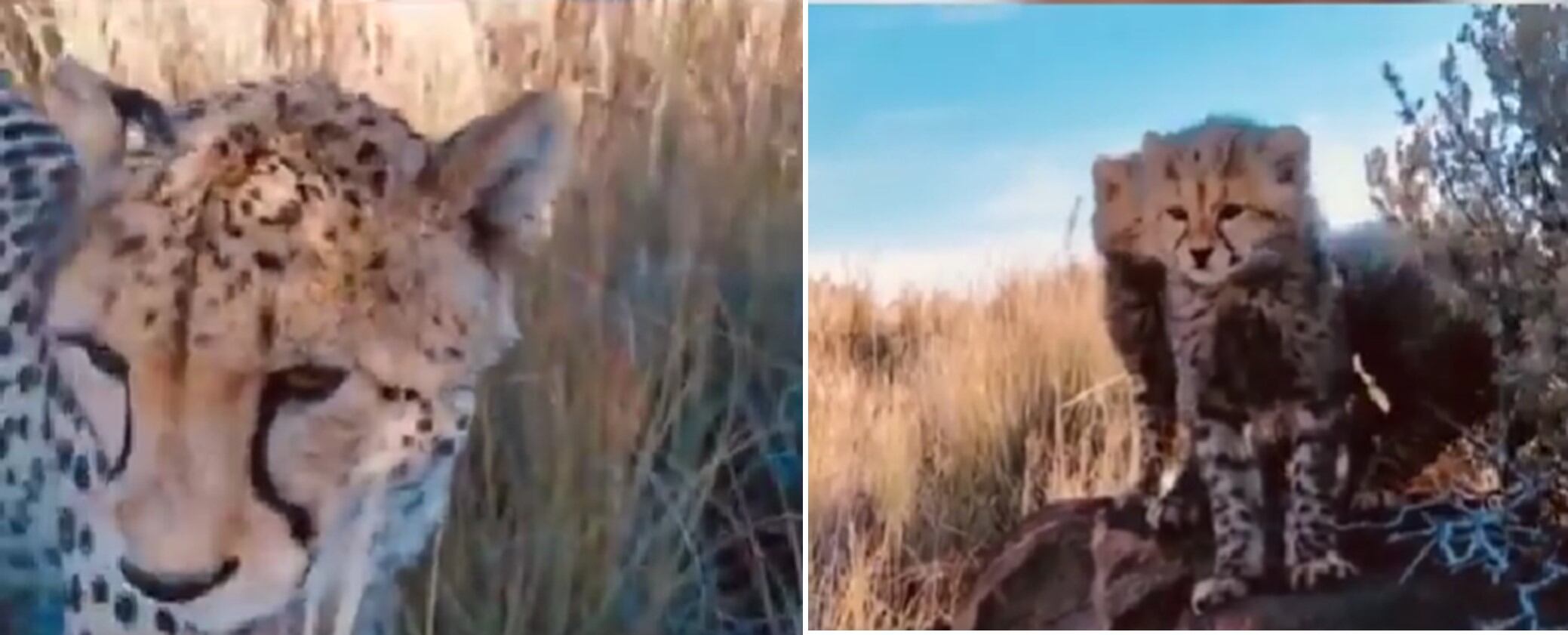 Y que, también es un cazador diurno que se puede aprovechar de sus movimientos sigilosos. En la grabación difundida se aprecia cuando el guepardo se acerca al hombre y comienza a maullar, y en ese momento se comienzan a acercar sus tres crías.