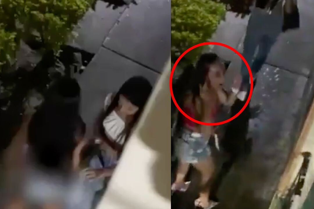 En el clip se aprecia cómo dos mujeres caminaban por la calle y una de ellas, aparentemente por una urgencia, decidió orinar en la vía pública. En las imágenes se observa cómo una de las involucradas se detiene para orinar en la calle, cuando de pronto, una vecina sale de su venta y le arroja una cubeta de agua fría.