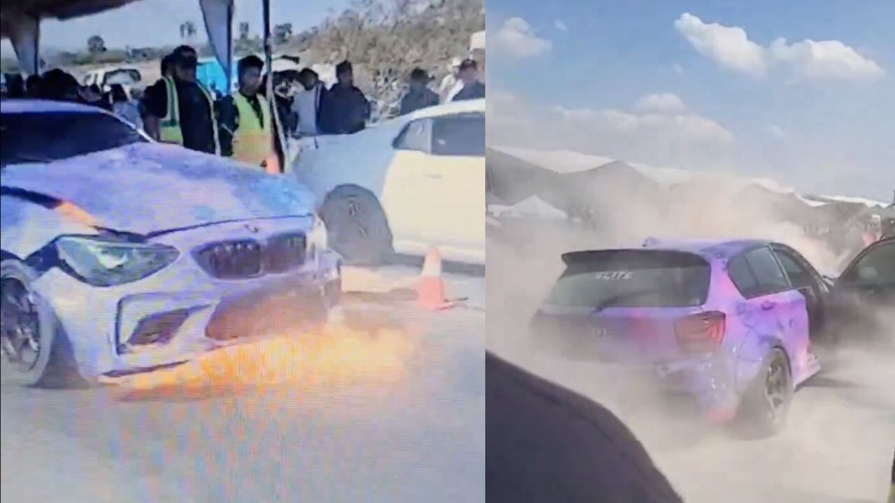 Sí, un BMW 135i explotó y se incendió durante un evento de arrancones en Ezequiel Montes, Querétaro, dejando atónitos a los asistentes del Autoboutique 1/4 de Milla.