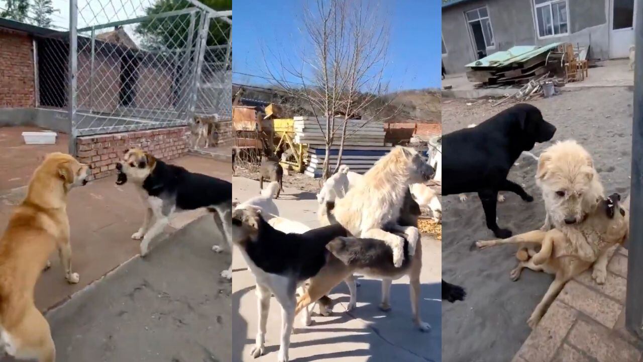 Los videos, que se viralizaron en plataformas como X, muestran a King Charles caminando con una calma asombrosa entre una manada de perros en un refugio ubicado en una región rural de China.