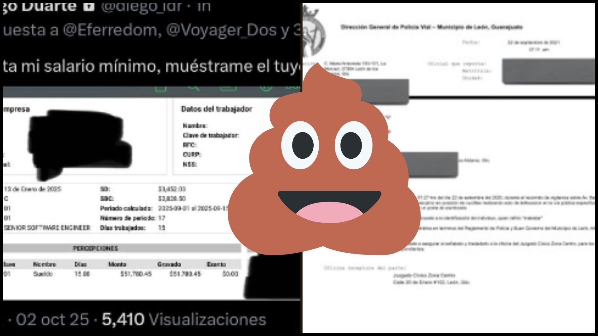 “¿Ya te sabes el chisme? Un wey que se llama Diego se estaba peleando aquí en X y subió una foto de su nómina para presumir que gana 50 mil a la quincena. El pedo fue que doxearon al bato y subieron sus multas, lo curioso es que tenía una por cagar en la calle”.
